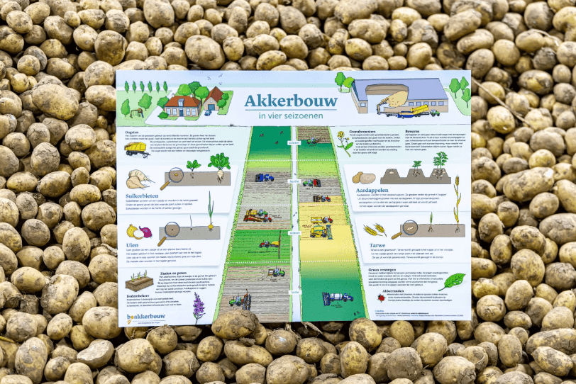 Boeren, tuinders en vissers hebben een verhaal. Ze onderhouden het platteland en de zee, produceren voedsel en brengen daarmee mens, dier en natuur samen. Dit mooie verhaal is het waard om in de klas verteld en gehoord te worden. Hoe groeien spruitjes? Wat is de rol van bijen? Hoe groot is een kalf bij de geboorte? Er is zoveel te vertellen en te leren!