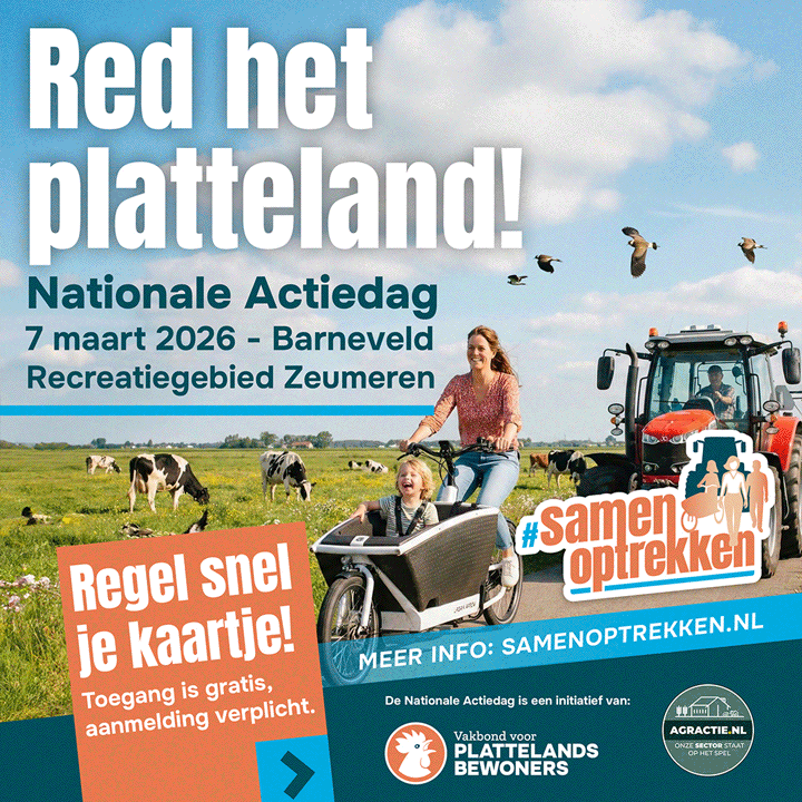 De Nationale Actiedag Red het Platteland is een grote landelijke bijeenkomst waar burgers, boeren en ondernemers samen optrekken. Want niet alleen de boer staat onder druk, maar het hele leven op het platteland: landschap, voedselzekerheid, leefbaarheid en sociale samenhang.